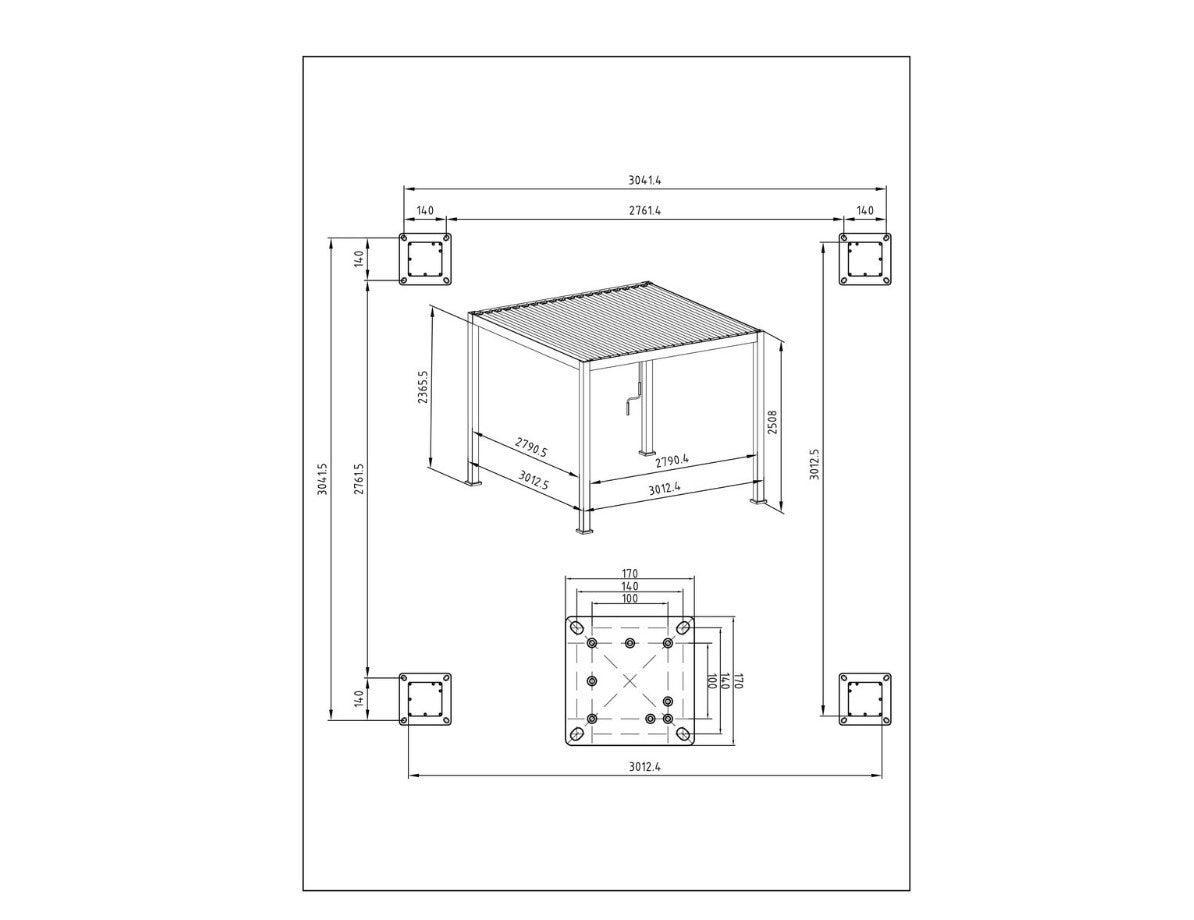 - Remarque : Installation autoportante. Pare-soleil latéral non inclus.