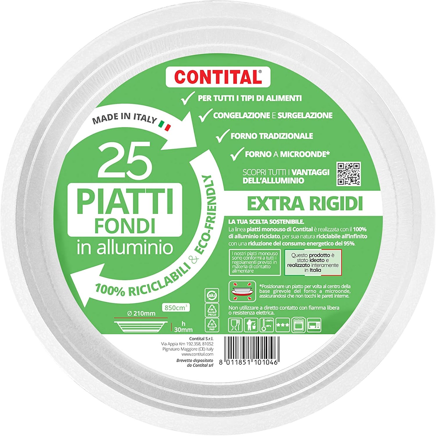Contital Assiettes à fond blanc laqué en aluminium, diamètre 210 mm, lot de 25.