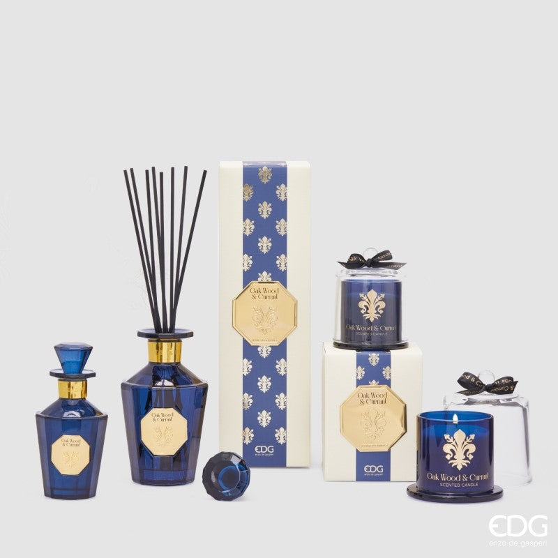 Bougie EDG Enzo De Gasperi GoldLily avec dôme H 13 cm en bois de chêne et cassis