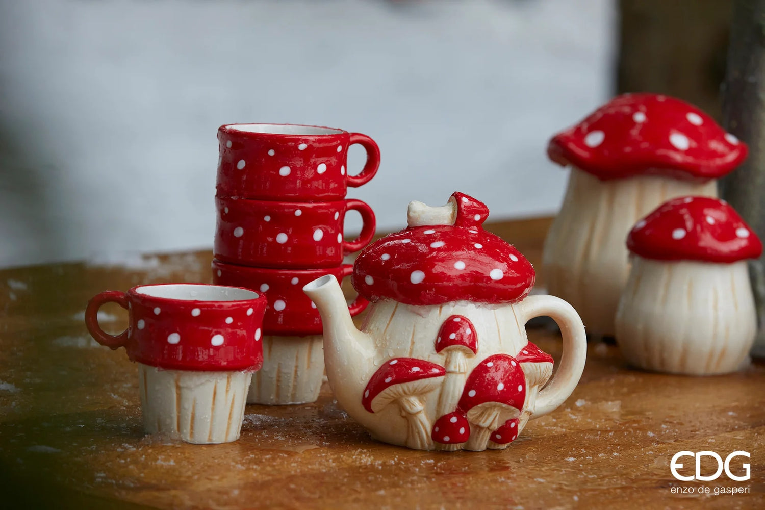EDG Enzo De Gasperi Bac à champignons H 18 cm P 15 cm Blanc Rouge