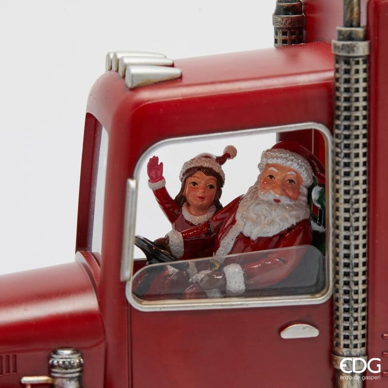 EDG Enzo De Gasperi Décoration Camion Père Noël H 21,5 cm L 28 cm P 9 cm Musique, Lumières LED Rouges