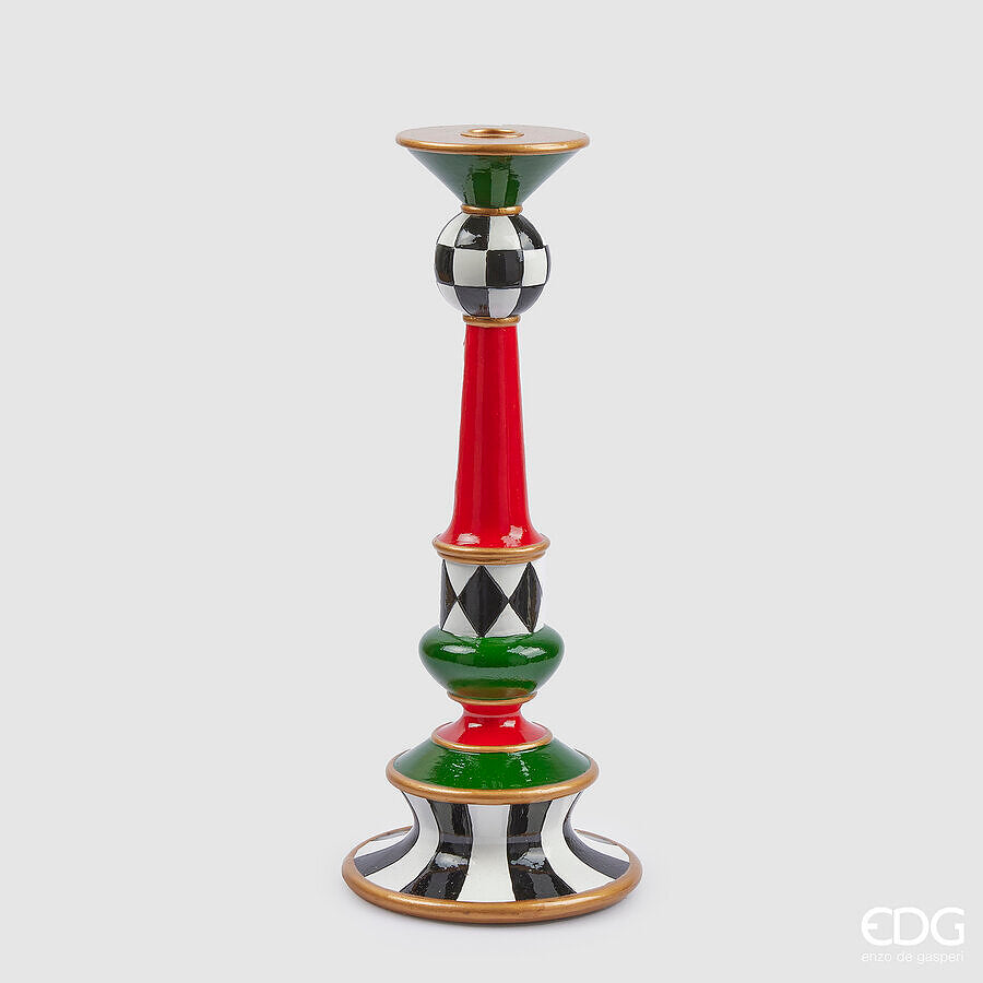 EDG Enzo De Gasperi Porte-bougies de Noël Échecs H 35 cm D 14 cm Blanc Noir