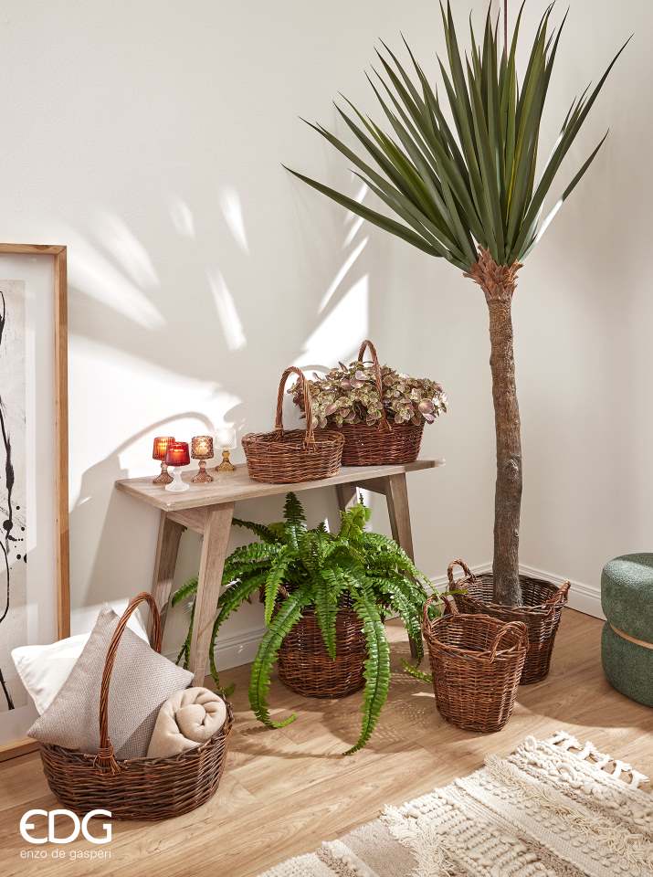 Cet élégant ensemble de trois paniers ovales en osier, signé EDG Enzo De Gasperi, est idéal pour décorer n'importe quelle pièce de votre maison avec une touche naturelle. Confectionnés en osier tressé de haute qualité , ils sont résistants, polyvalents et parfaits pour la décoration, les compositions florales, les présentations ou comme contenants pratiques.
