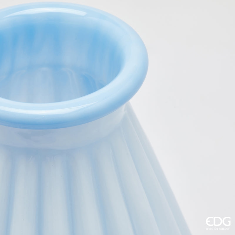 EDG Enzo De Gasperi Vaso Righe con Bordo H 28 Cm D 23 Cm Waterproof Vetro Celeste