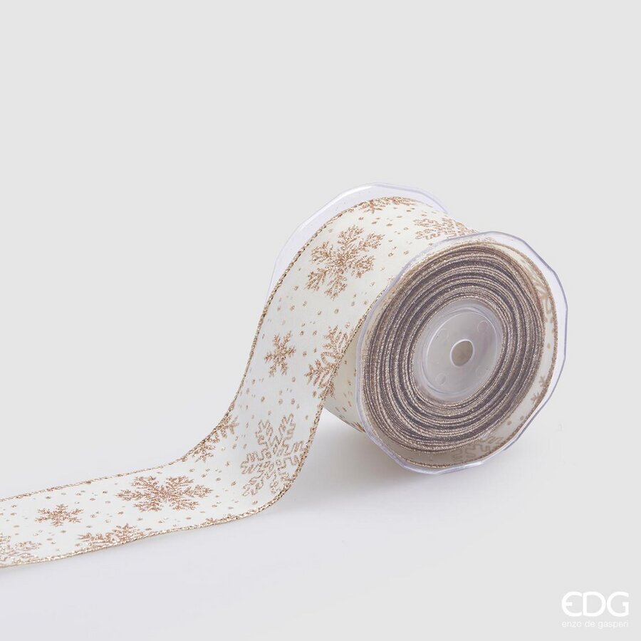 Ruban de Noël EDG Enzo De Gasperi Flocons de neige H 65 mm 10 m Ivoire Or