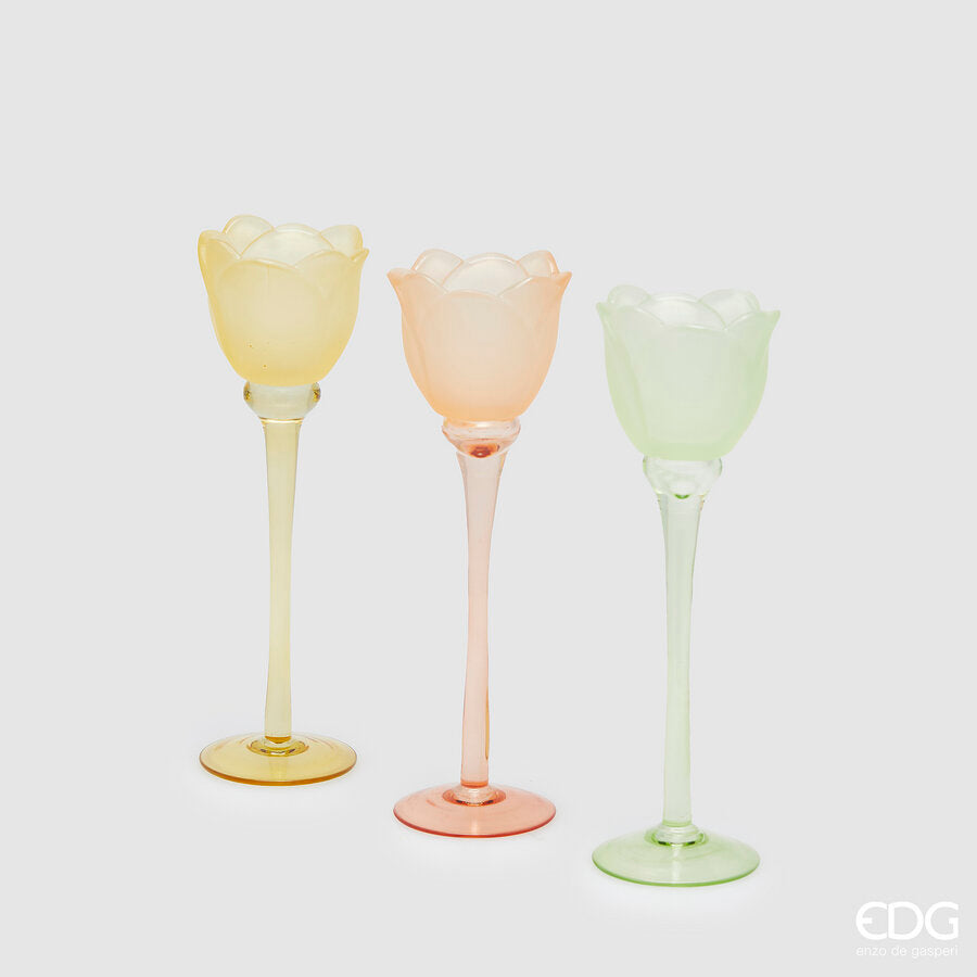 EDG Enzo De Gasperi Bougeoir Tulipe Satin H 28 Cm D 8,5 Cm 3 Ass. Jaune Vert 1 Pc