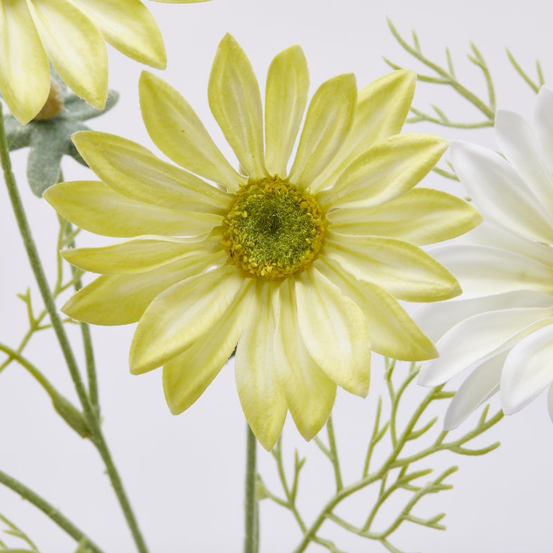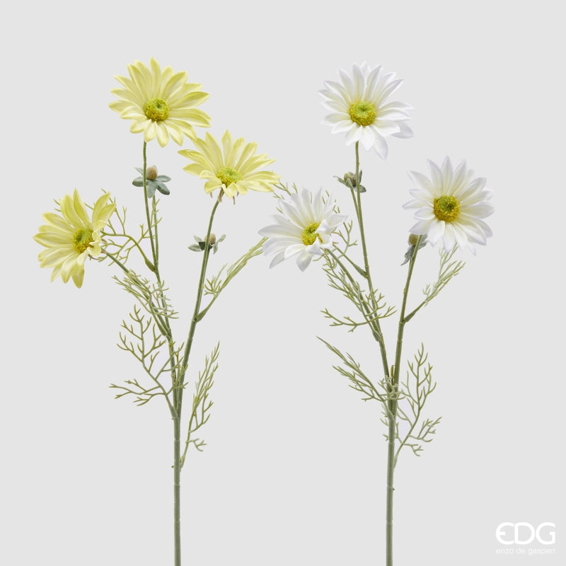 EDG Enzo De Gasperi Branche de Marguerite avec 3 Fleurs et Feuilles H 65 cm Blanc ou Jaune 1 pc