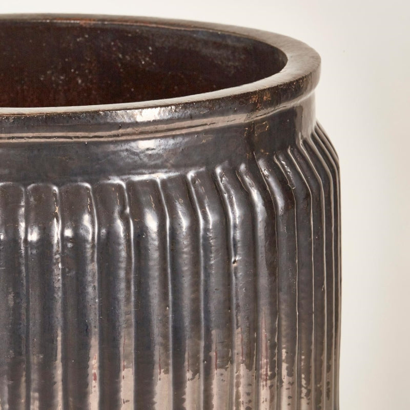 EDG Enzo De Gasperi Lot de 3 vases ronds émaillés H 70 cm H 55 cm H 40 cm Imperméable Noir Argent