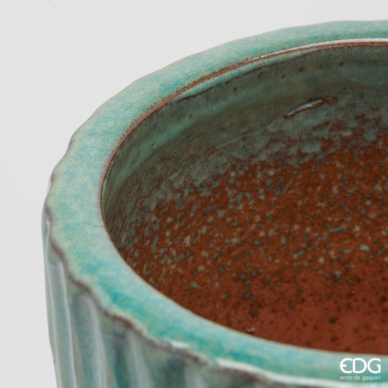 EDG Enzo De Gasperi Lot de 4 Vases Glaze Atlas Righes Waterproof Mix Bleu – Céramique Émaillée d'Extérieur avec Trou