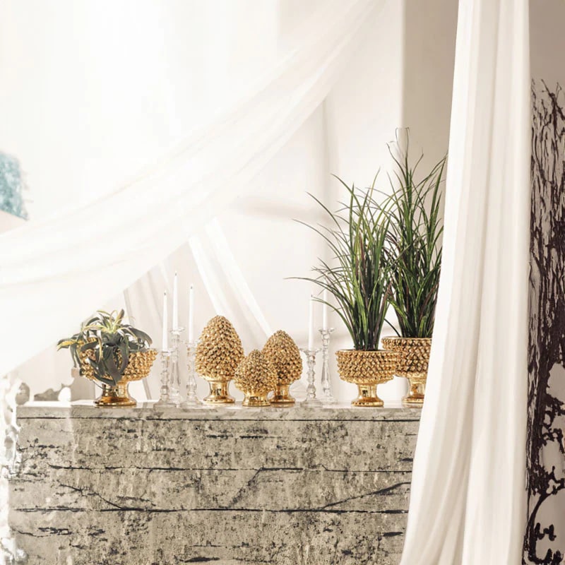 Vase pomme de pin EDG Enzo De Gasperi Fenice avec pied H 24,5 cm P 28 cm Couleur or est en rupture de stock et sera expédié dès qu’il sera de retour en stock.