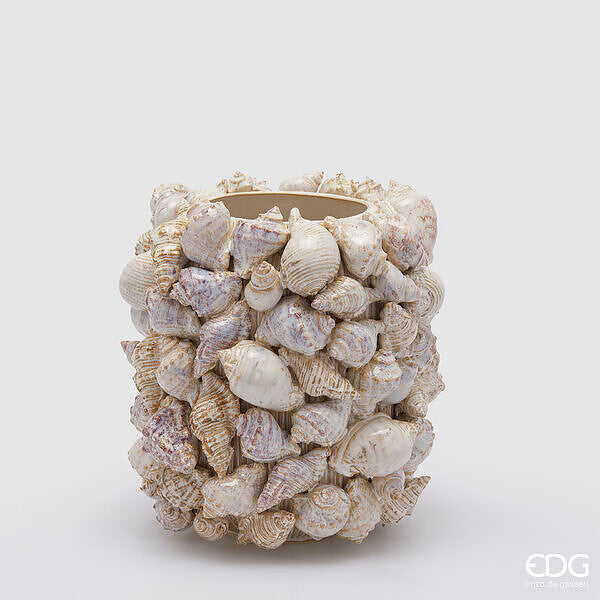 Vase Freaky EDG Enzo De Gasperi avec coquillages courbé H 24,5 cm D 24 couleur ivoire