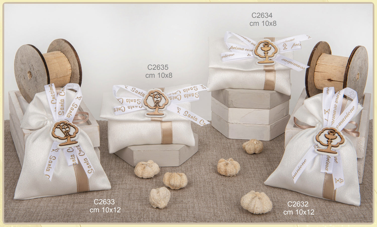 ETM Pochette pour confettis, ruban pour communion, 10 x 8 cm, beige, 12 pièces.