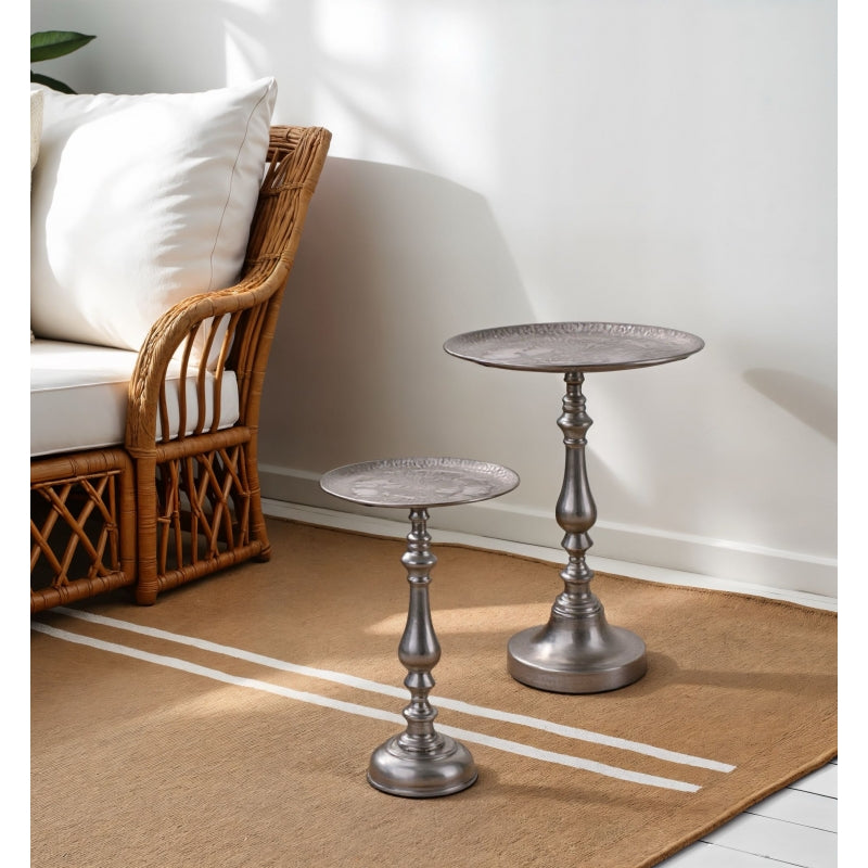Fade Set de 2 Tables Basses Layla en Métal Argenté 55 x 73 cm 42 x 66 cm – Tables Basses Modernes pour Salon