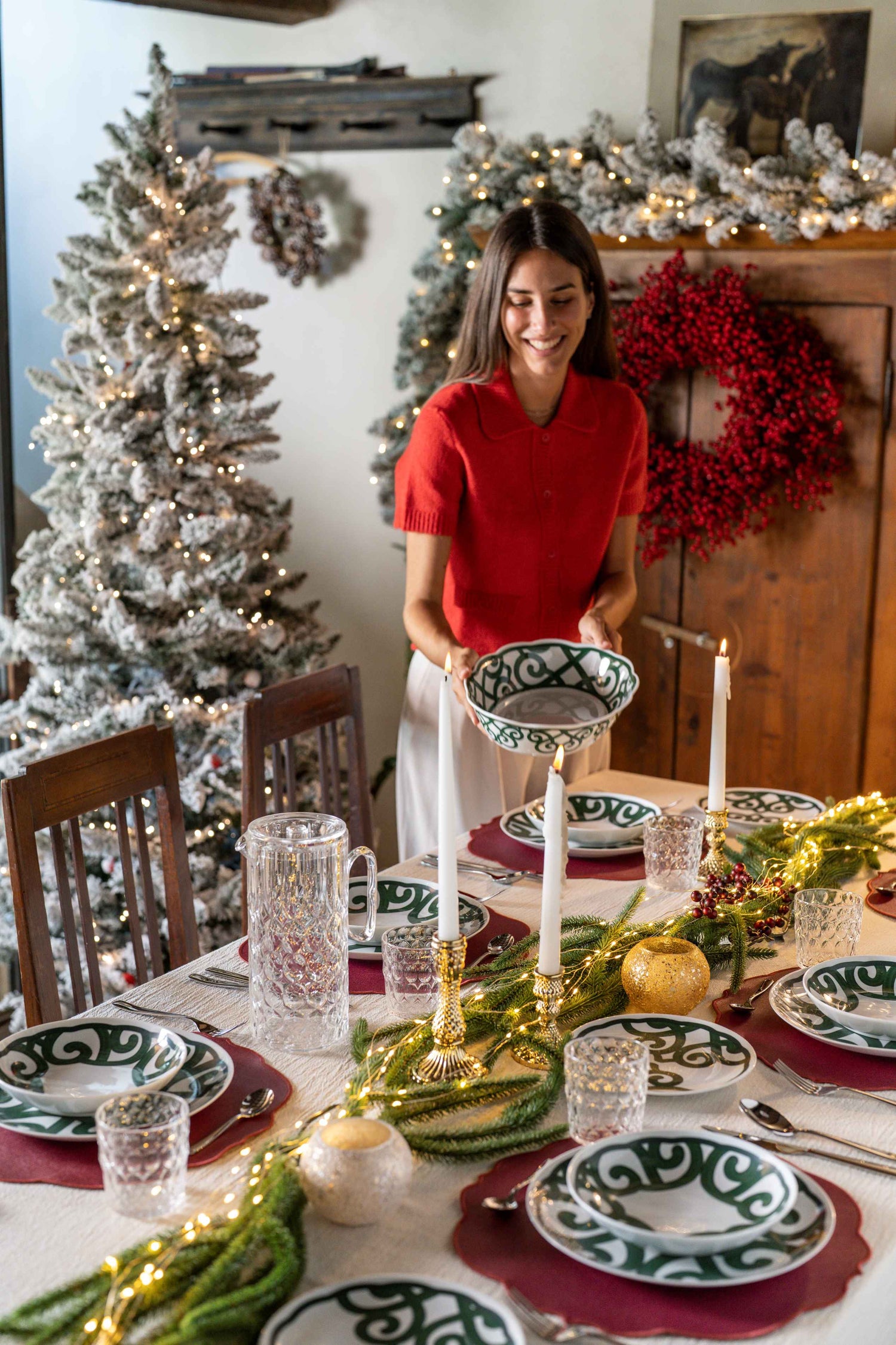 🍽️ Un design raffiné et festif – des décorations vertes sur fond blanc pour un effet élégant et harmonieux