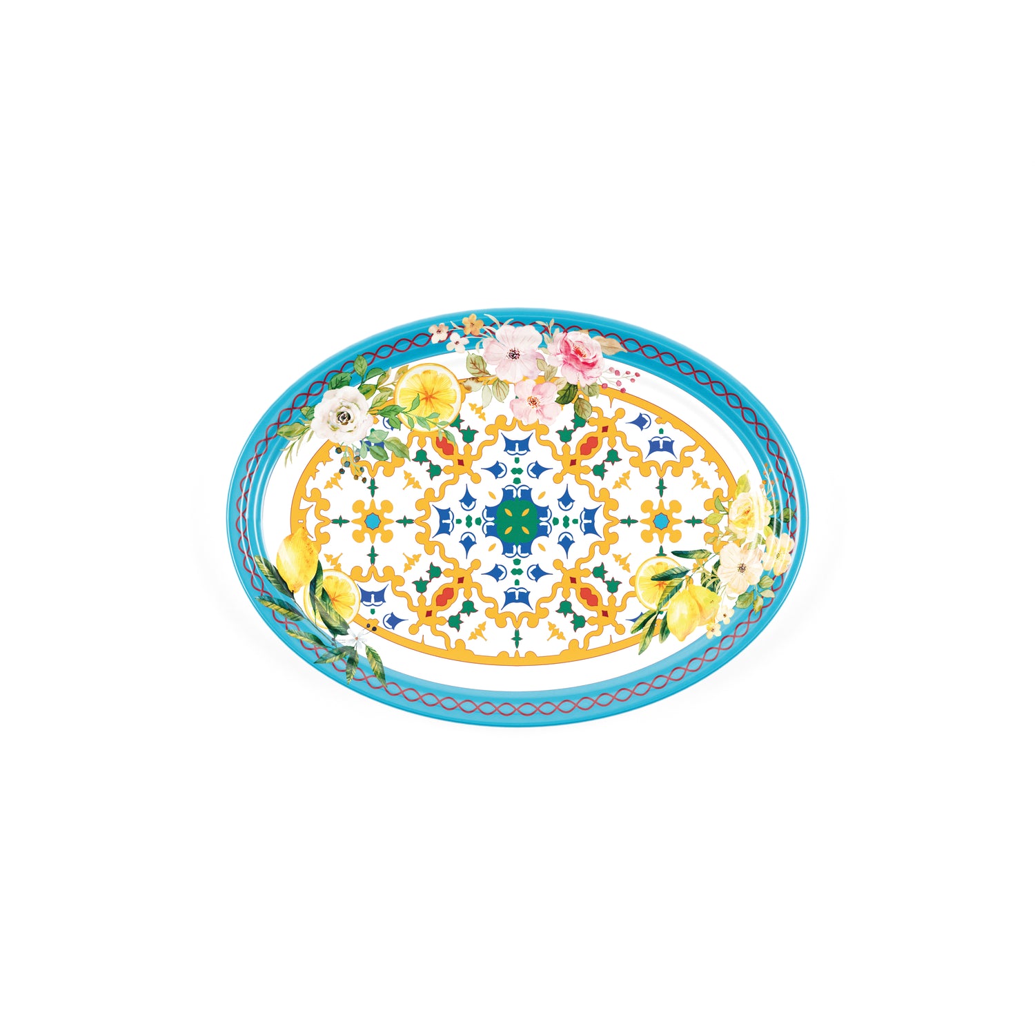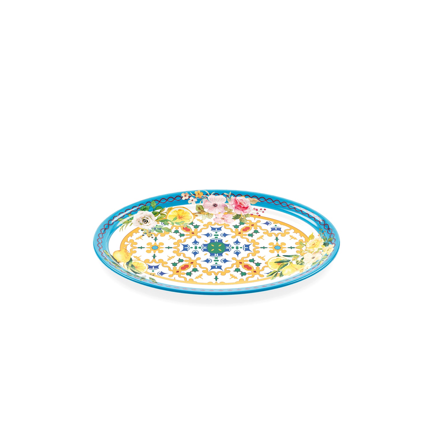 Petit plateau ovale GUZZINI en mélamine, motif fleurs et citrons, décoration de table