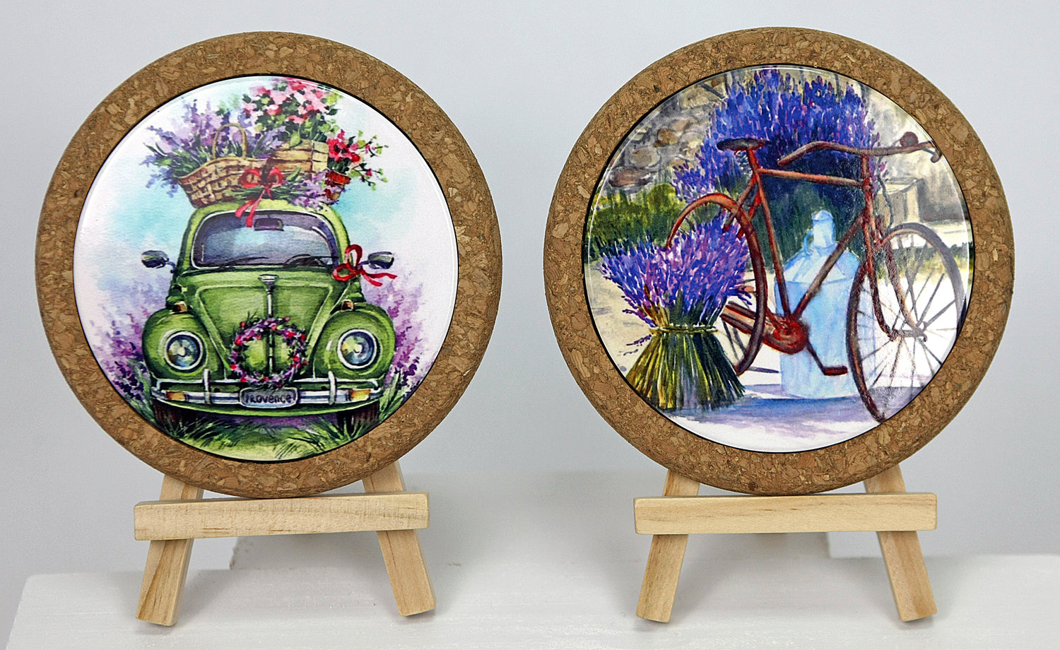 Dessous de verre en céramique et liège Linea Due Elle D 11 cm Décoration lavande 1 pièce