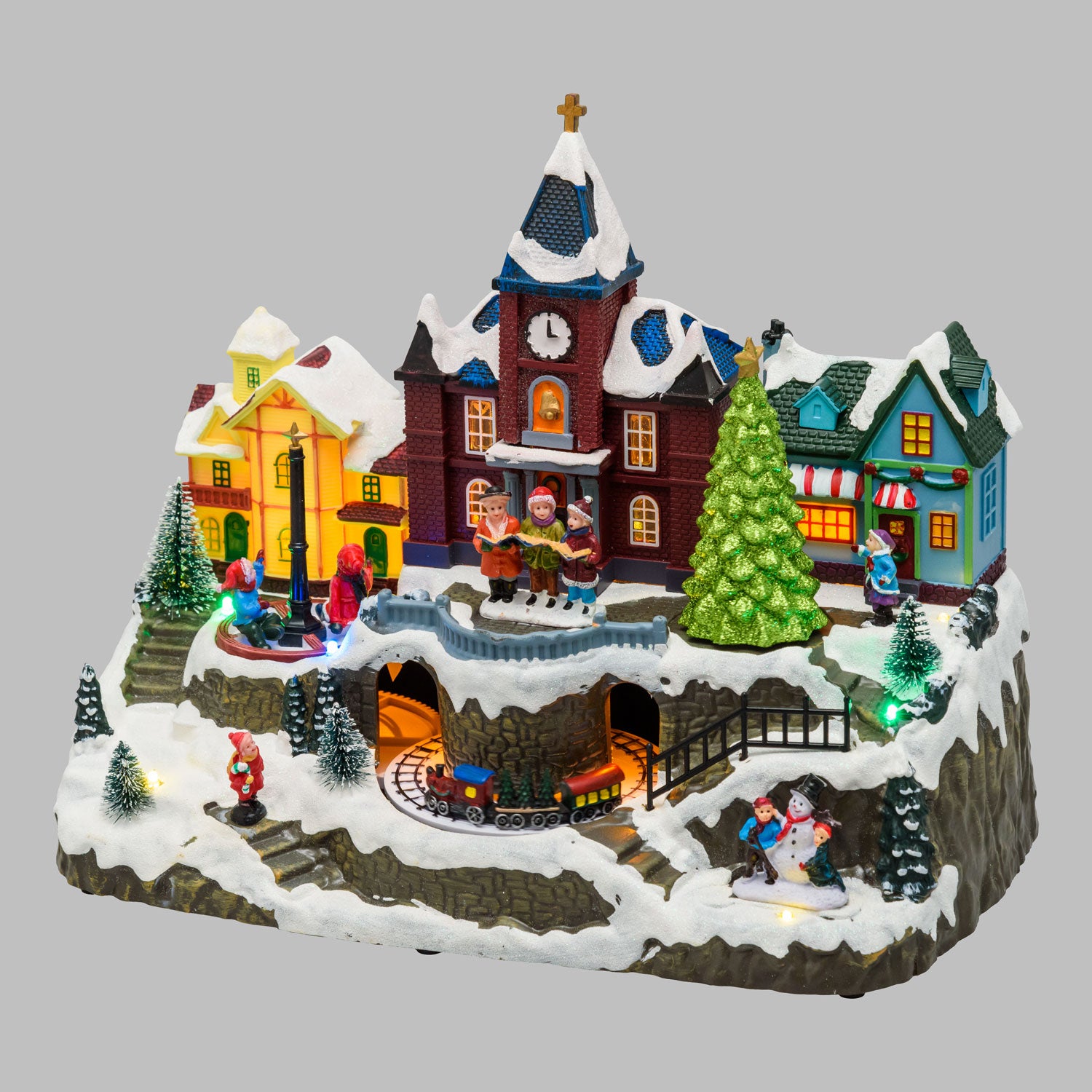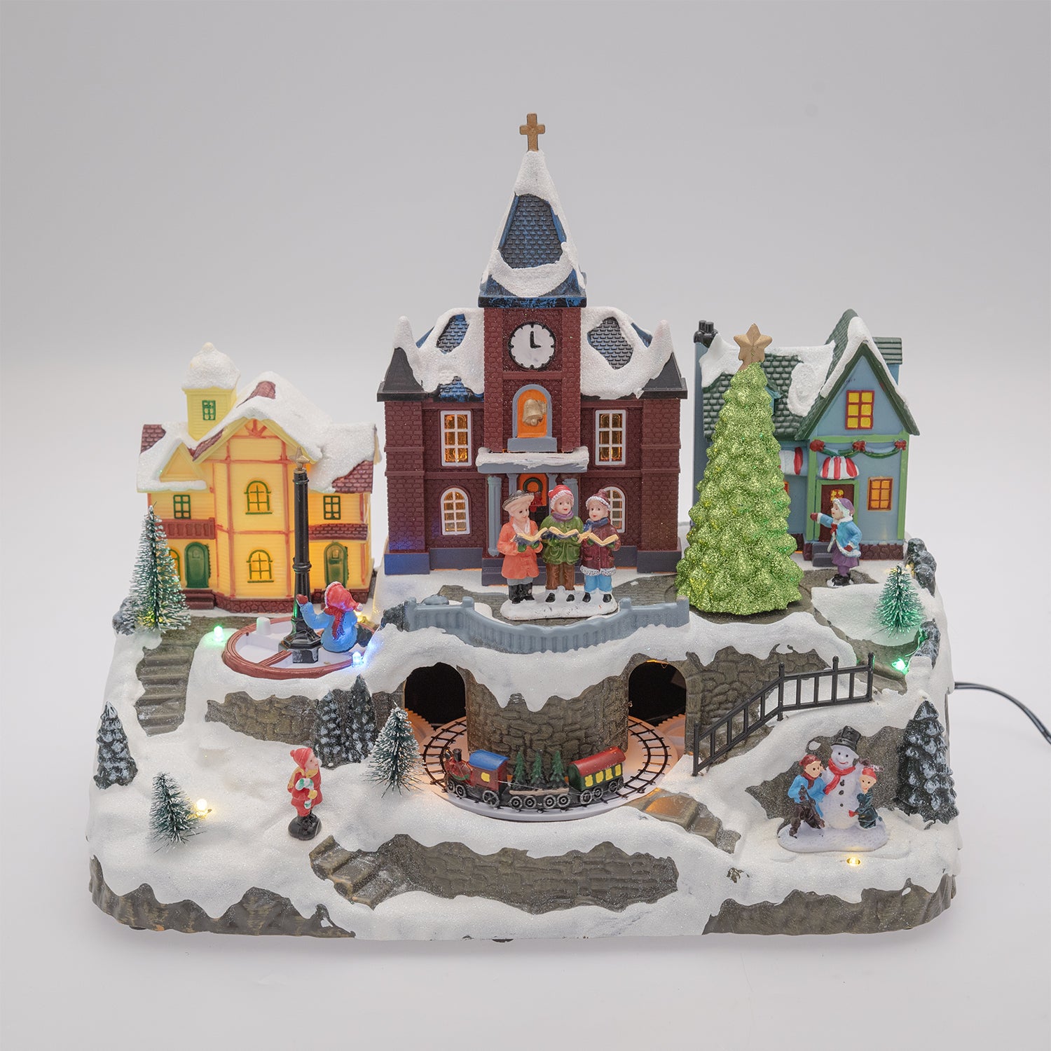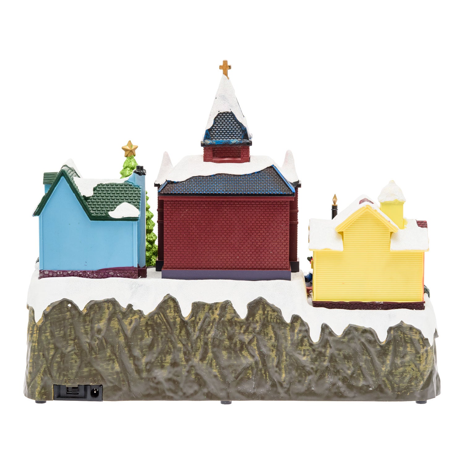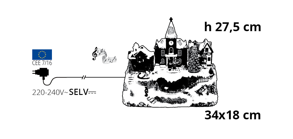 Village de Noël enneigé Lotti avec église H 27,5 cm 34 x 18 cm Musique LED Mouvement rotatif