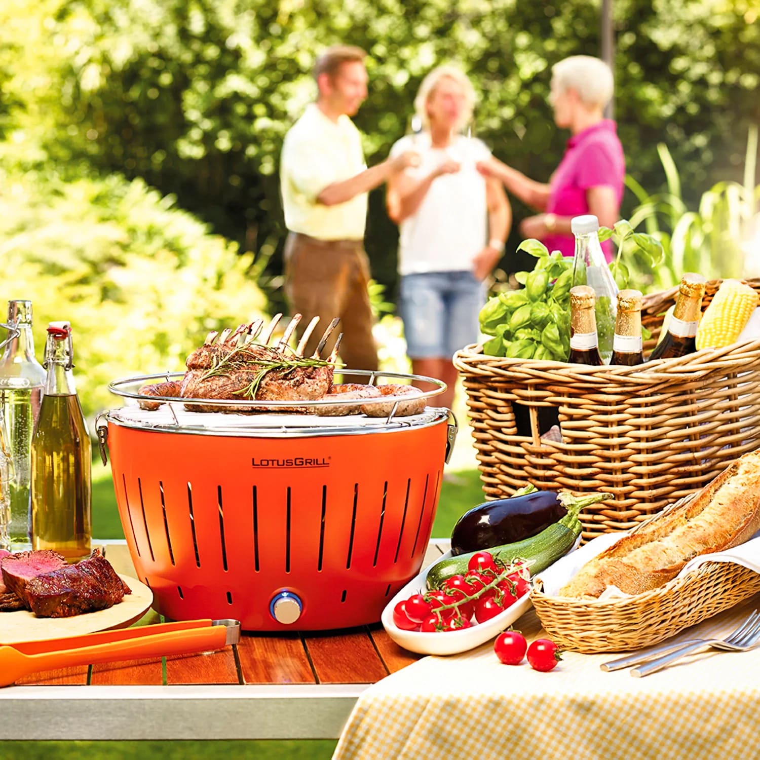 Le LotusGrill XL Orange est le barbecue portable idéal pour les amateurs de cuisine en plein air qui aiment cuisiner pour de grands groupes . Alliant puissance, sécurité et zéro fumée, il arbore un design moderne et dynamique. Grâce à sa très grande surface de cuisson, il permet de préparer de délicieux repas grillés pour plus de 10 personnes ! 🍖🔥🍊
