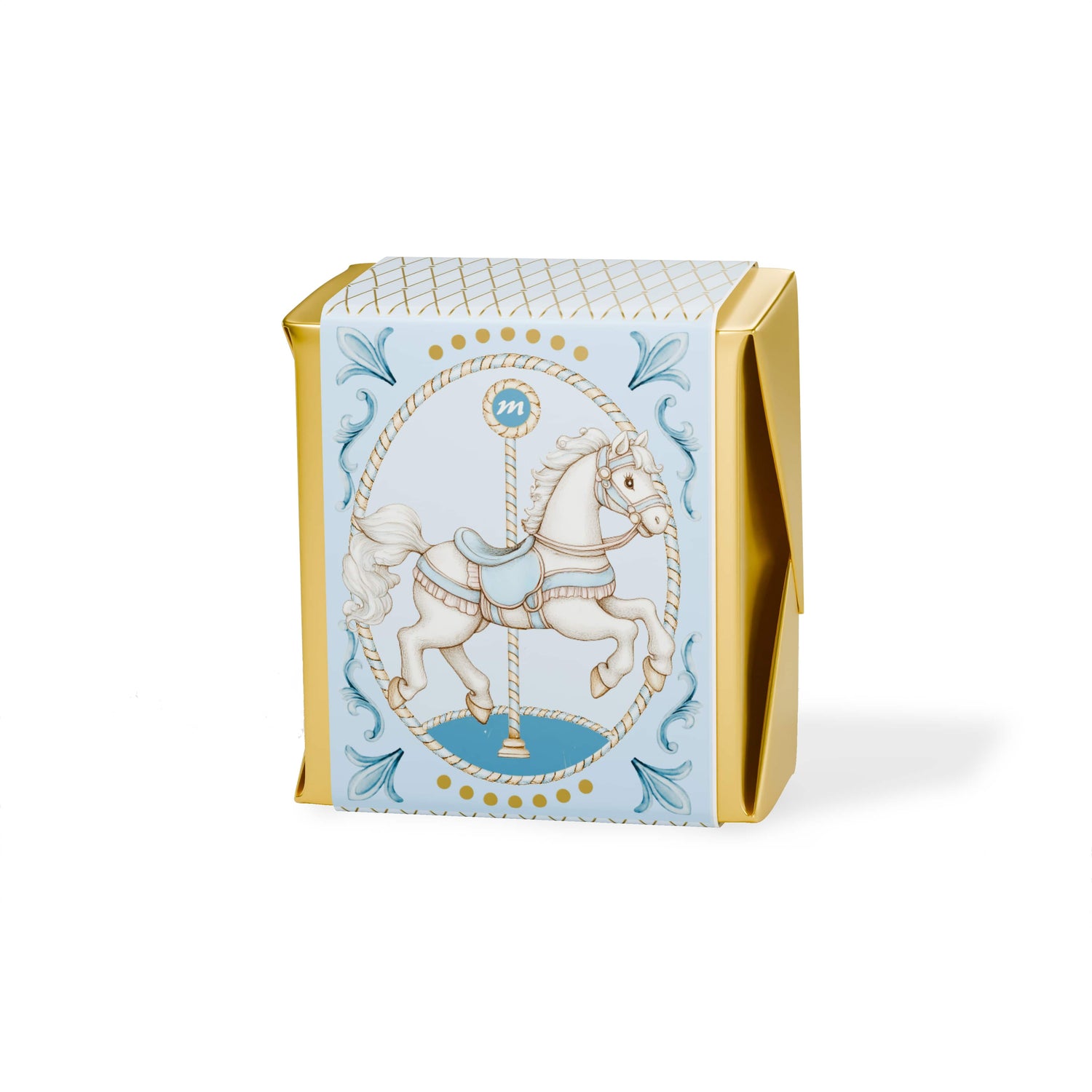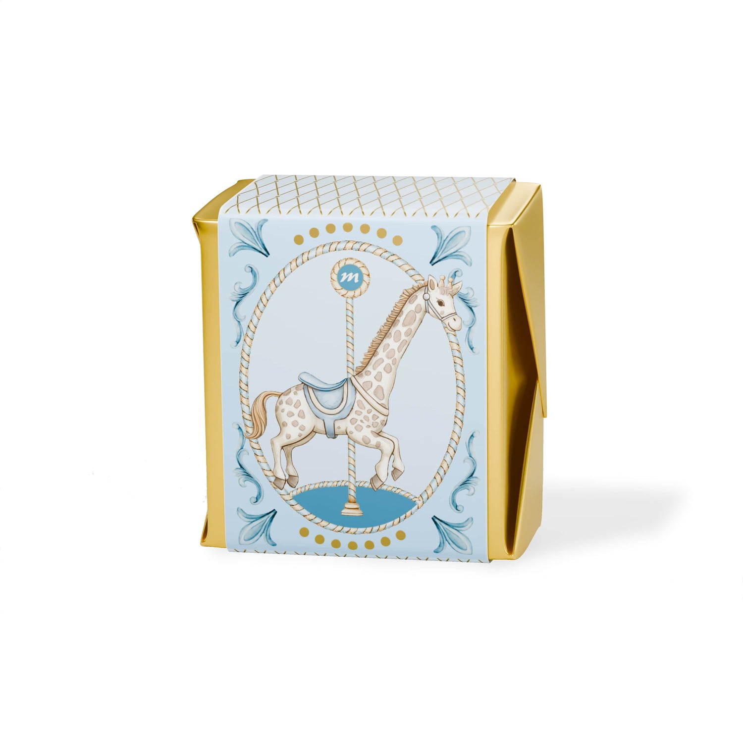 Maxtris Baby Cremino Triplo Strato Celeste est un chocolat raffiné dédié aux occasions spéciales telles que les naissances, les baptêmes et les fêtes prénatales. Son emballage, orné d'une élégante illustration sur le thème du carrousel, renferme 250 g de cremini composés de trois couches de chocolat au lait , enrichies de pâte de noisette italienne et de pâte d'amande , pour une saveur riche, onctueuse et harmonieuse.