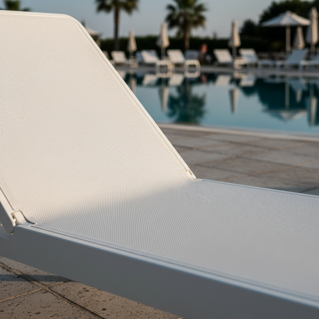 Fabriqué en polypropylène renforcé de fibres de verre teinté dans la masse et traité anti-UV avec une finition mate , ce transat résiste aux intempéries, au soleil et à une utilisation intensive. Son revêtement intérieur en tissu synthétique respirant et remplaçable garantit confort, hygiène et durabilité. Fabriqué à partir de résine recyclable , il représente un choix durable et responsable.