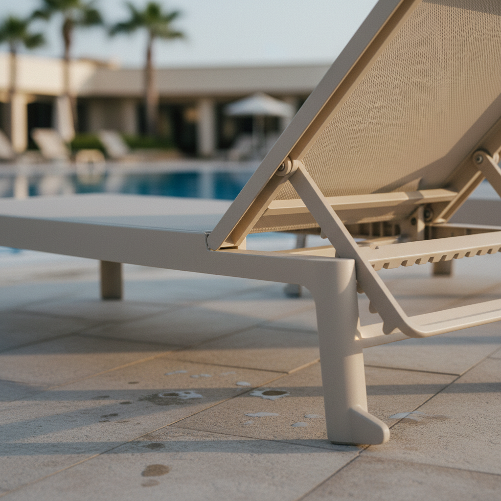 Sa structure sans accoudoirs , associée à sa conception empilable , rend ce lit de bronzage extrêmement pratique et peu encombrant, idéal même pour un usage intensif en milieu professionnel. Fabriqué en polypropylène renforcé de fibres de verre teinté dans la masse et traité anti-UV , avec une finition mate , il offre une haute résistance aux intempéries, au chlore et à l'eau salée.