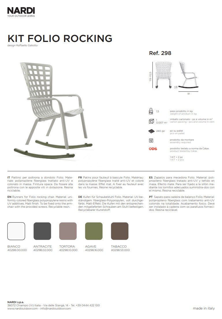 Fauteuil à bascule Nardi Kit Folio Rocking Pattino gris tourterelle
