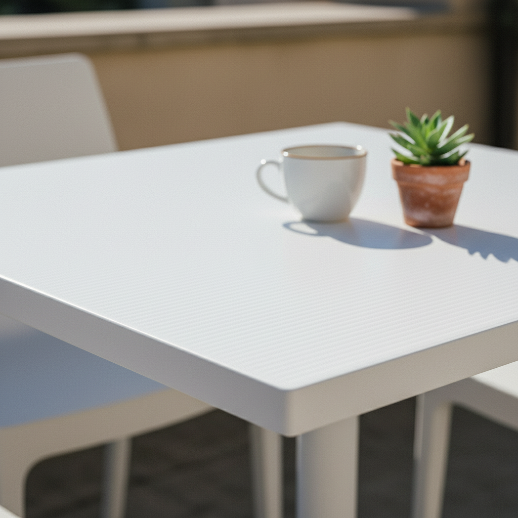 Le plateau de table Nardi DurelTop de couleur blanche de 70×70 cm complète n'importe quelle base de la série Nardi — Calice, Scudo, Ibisco, Fiore et Clip — transformant les terrasses, les extérieurs et les espaces contractuels en points de repas stables et soignés. Fabriqué en polypropylène DurelTop traité anti-UV avec une épaisseur de 2,2 cm, il résiste au soleil, à la pluie et au sel sans se déformer ni jaunir. Prêt à l'emploi, il se fixe à la base en quelques minutes sans outils spéciaux.