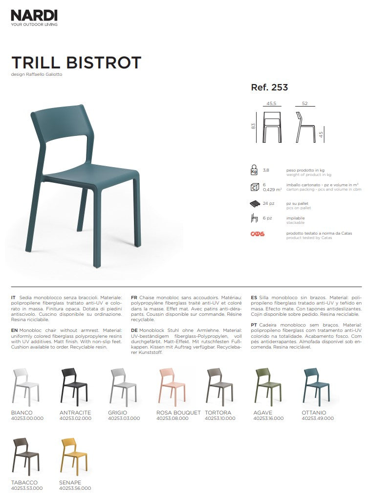 Chaise de bistrot Nardi Trill grise est en rupture de stock et sera expédié dès qu’il sera de retour en stock.