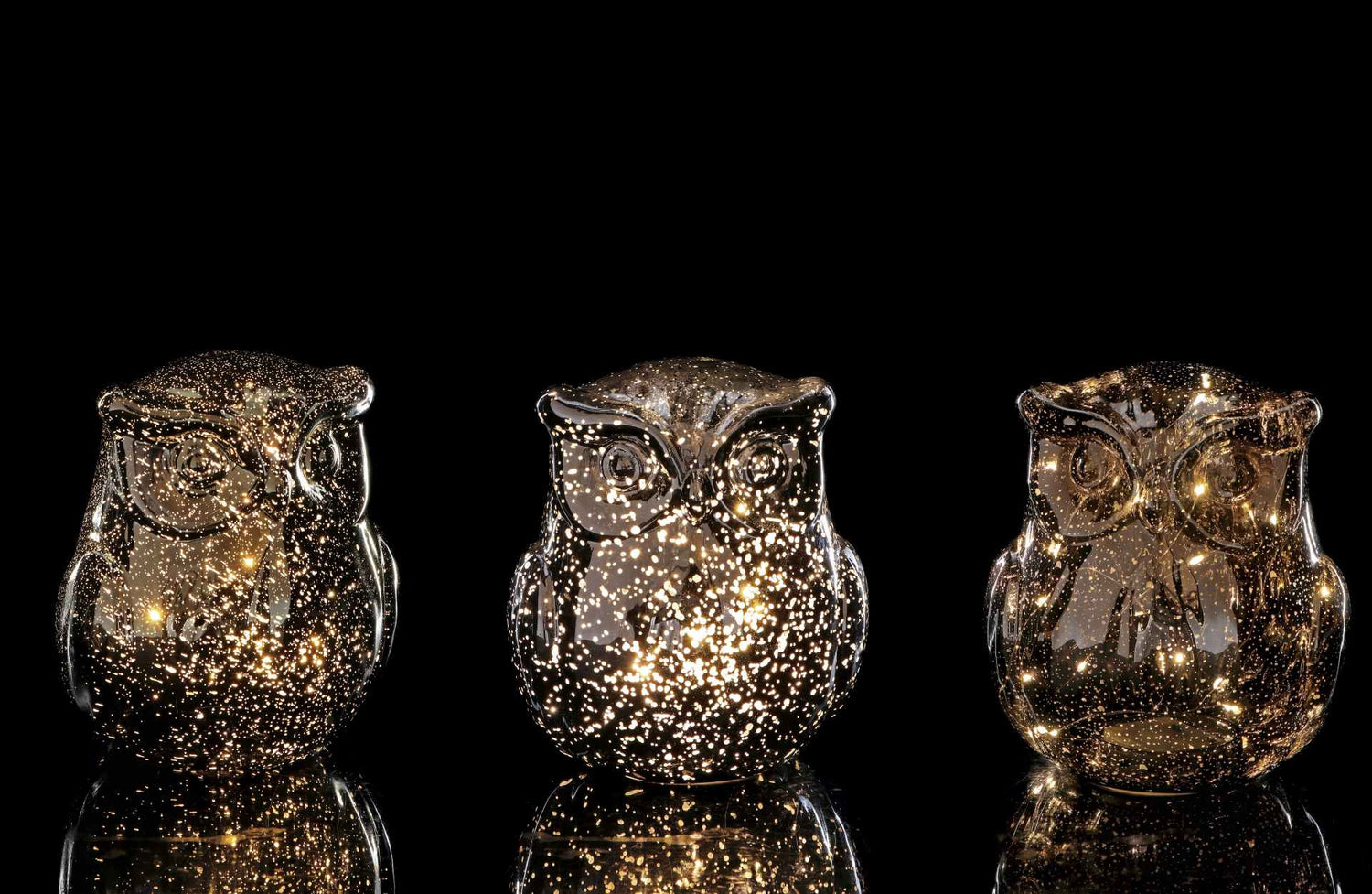 Lampe hibou cadeau italien Noël verre Ass. avec 15 LED D 16 Cm H 18 Cm Or 1 Pc