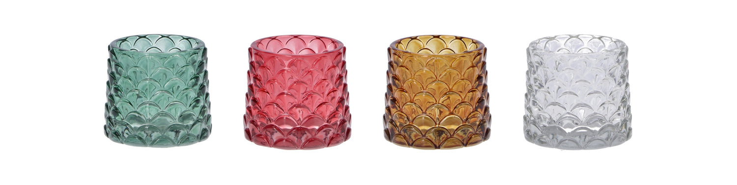 Cadeau italien, porte-tealight, assortiment, diamètre 8 cm, hauteur 7 cm, verre multicolore, 1 pièce.