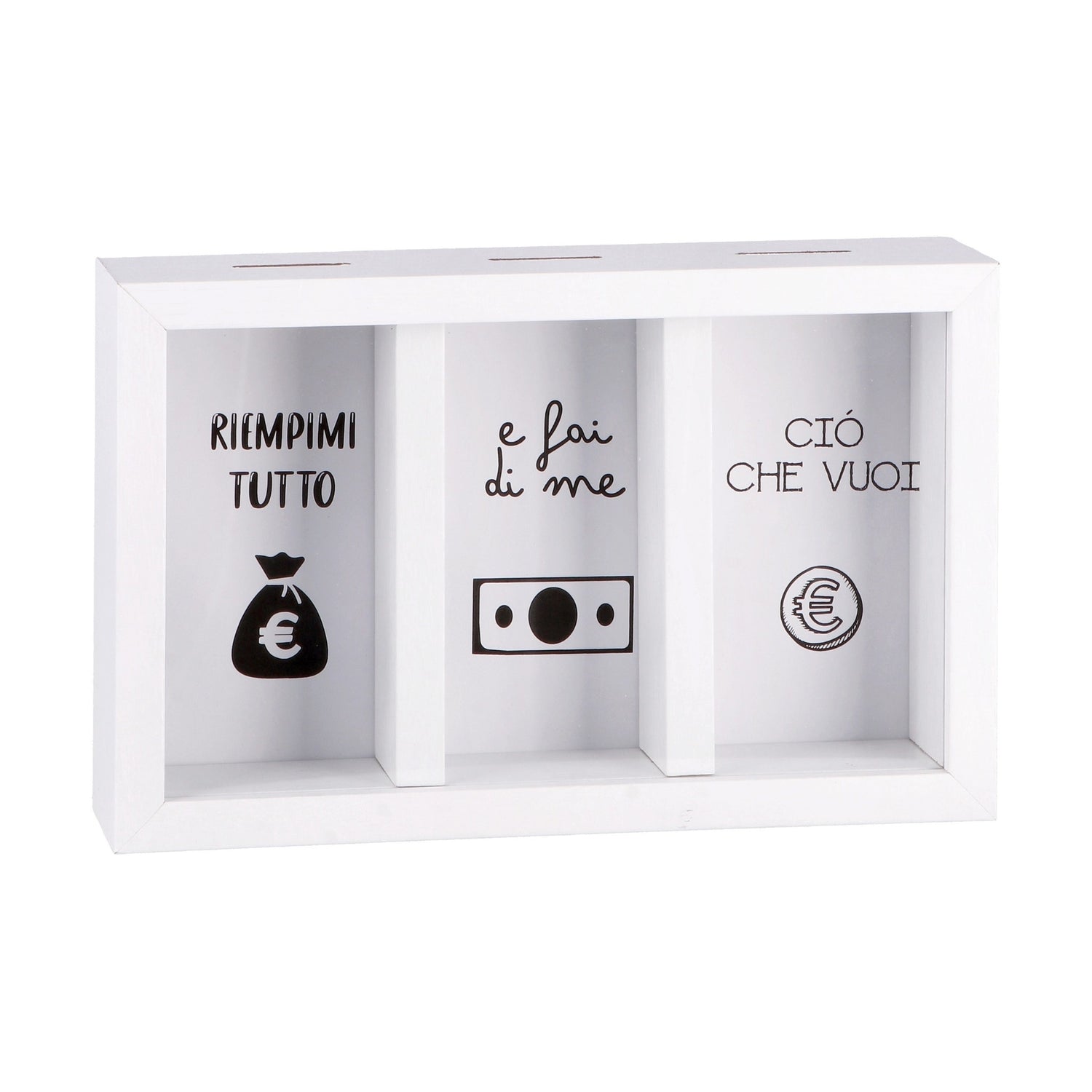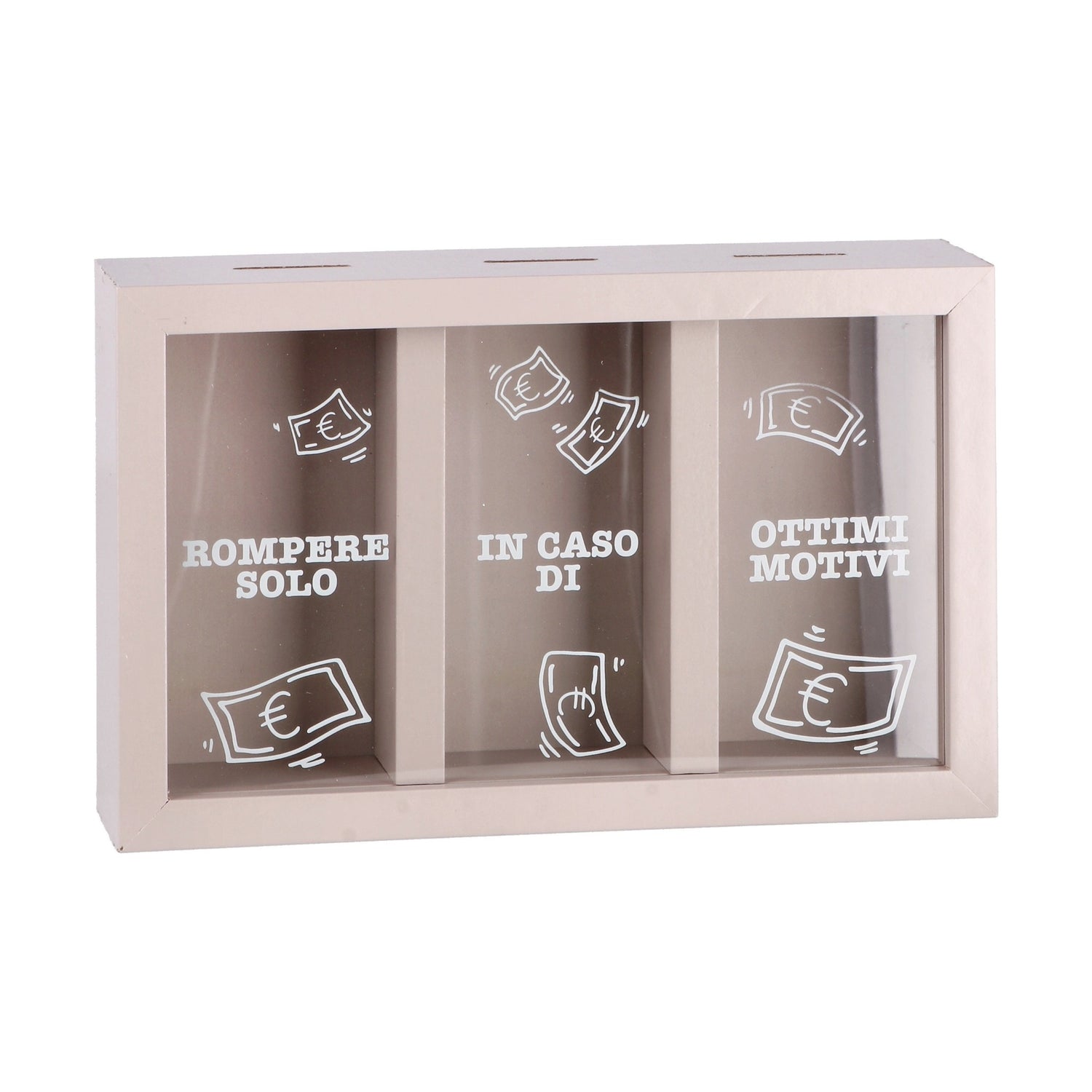 Regalo Italiano Salvadanaio in MDF e Vetro 3 Scomparsi 23 x 6 Cm H 15 Cm Ass.– Porta Risparmi Decorativo Moderno 1 Pz