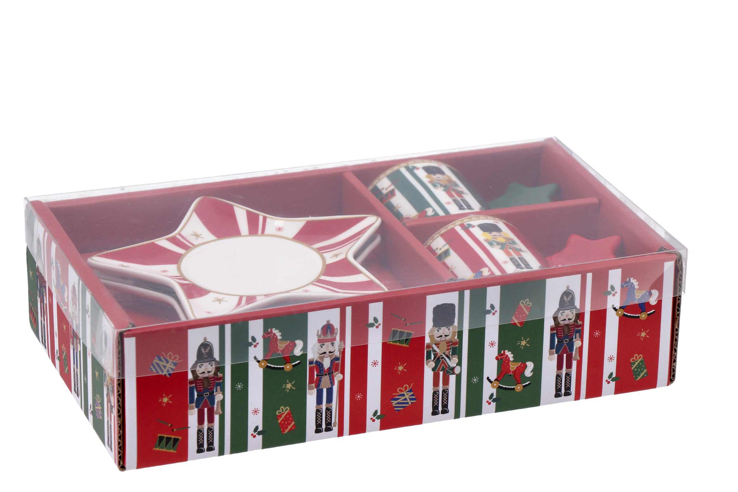 Coffret cadeau italien 2 tasses avec soucoupe Noël porcelaine assorties rouge blanc vert 1 pièce