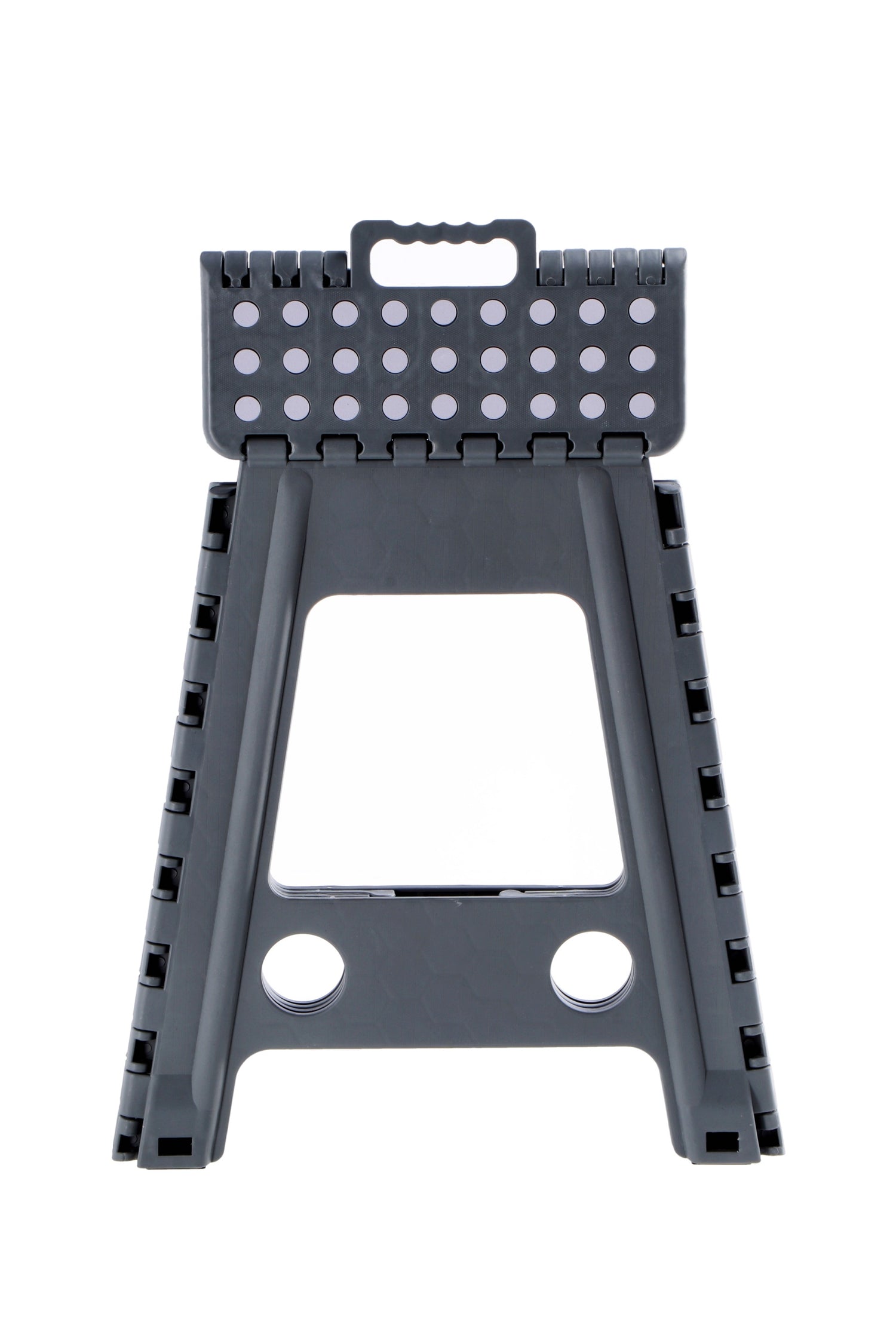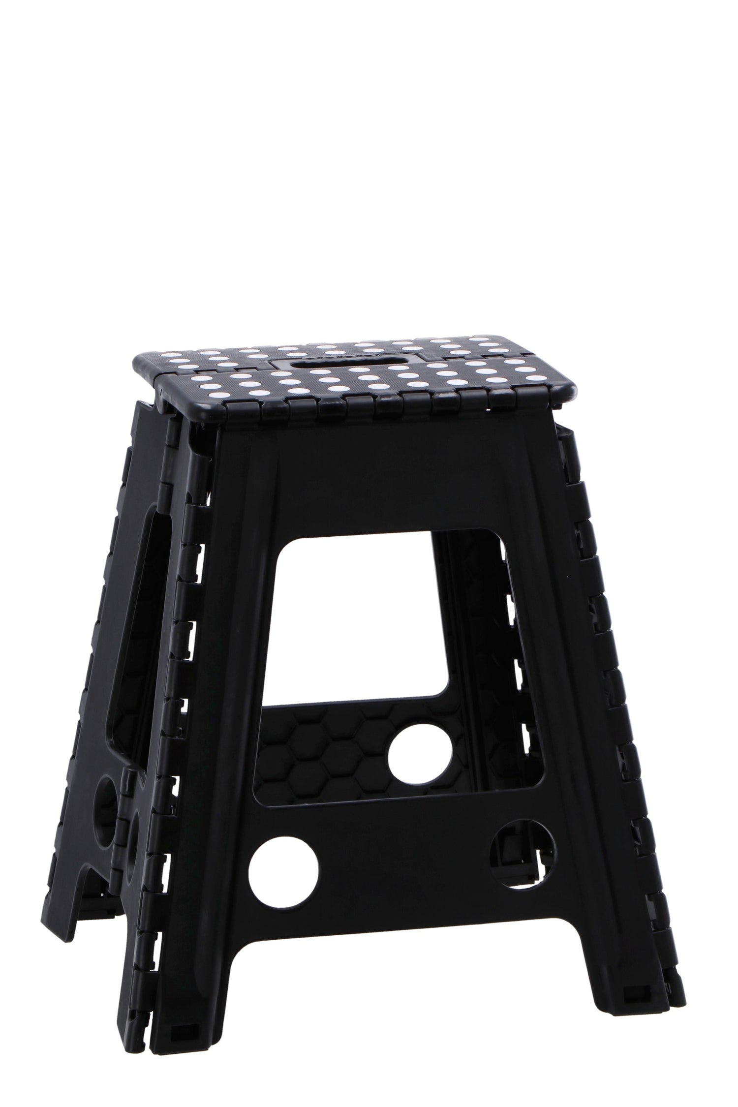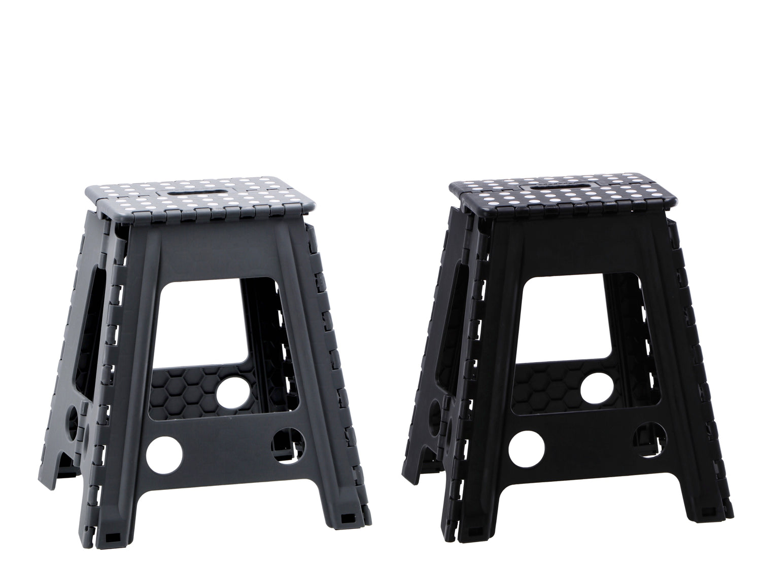 Tabouret pliant italien, coloris H 45 cm, dimensions 35 x 40 cm, plastique noir et gris, 1 pièce