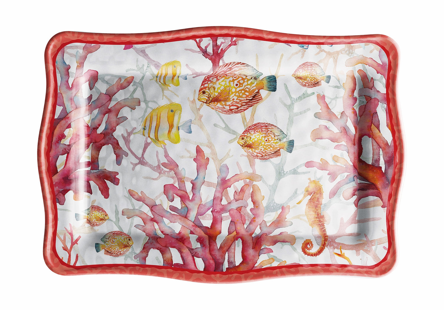 Cadeau Italien Plateau Rectangulaire Melamine Shell 30 x 21 cm H 2 cm Rouge 1 Pcs