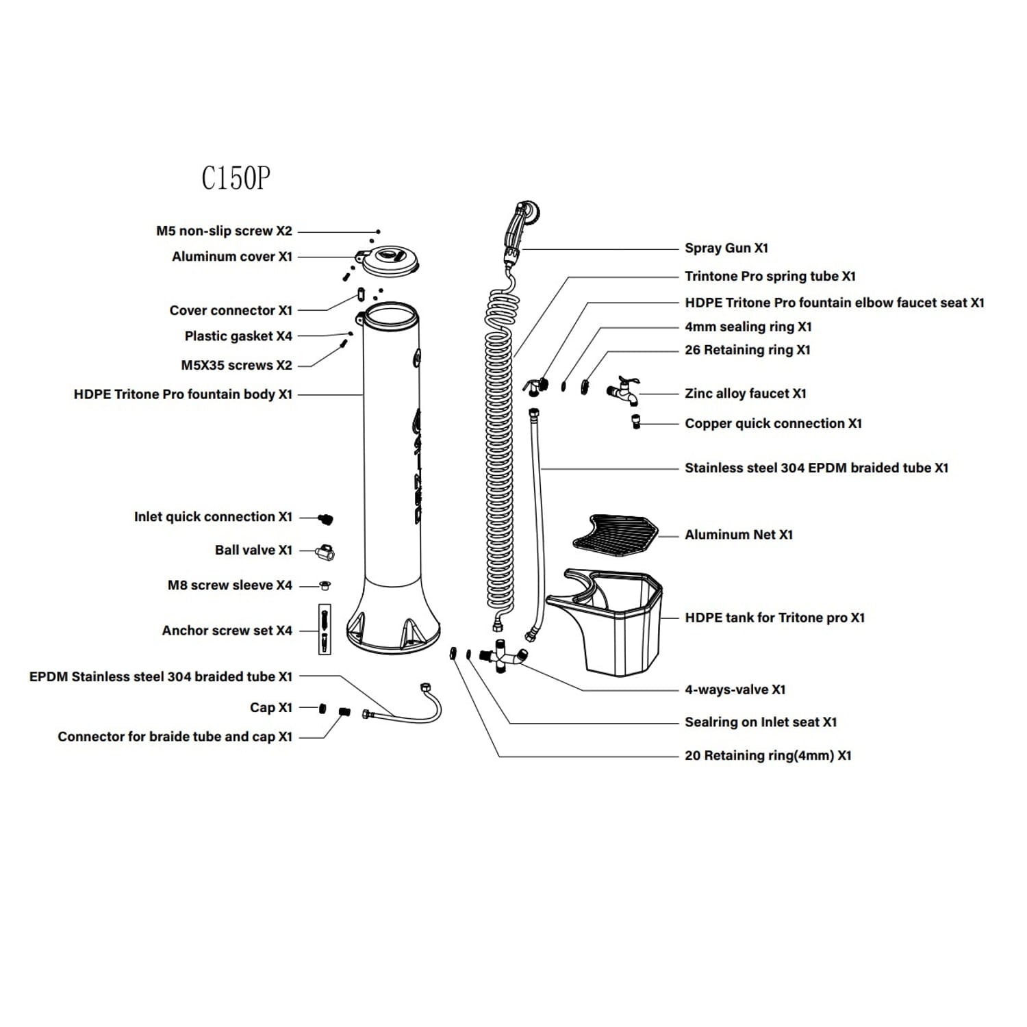 Haute qualité de construction avec accessoires exclusifs pour la nouvelle fontaine de jardin à eau froide gris tourterelle. Livré avec robinet, panier à la base et tuyau flexible pour arroser le jardin. Raccordement d'eau sur la base et sur le côté. Fabriqué en HDPE (polyéthylène haute résistance) résistant aux rayons UV, au calcaire et aux sels, également parfait pour les environnements marins.