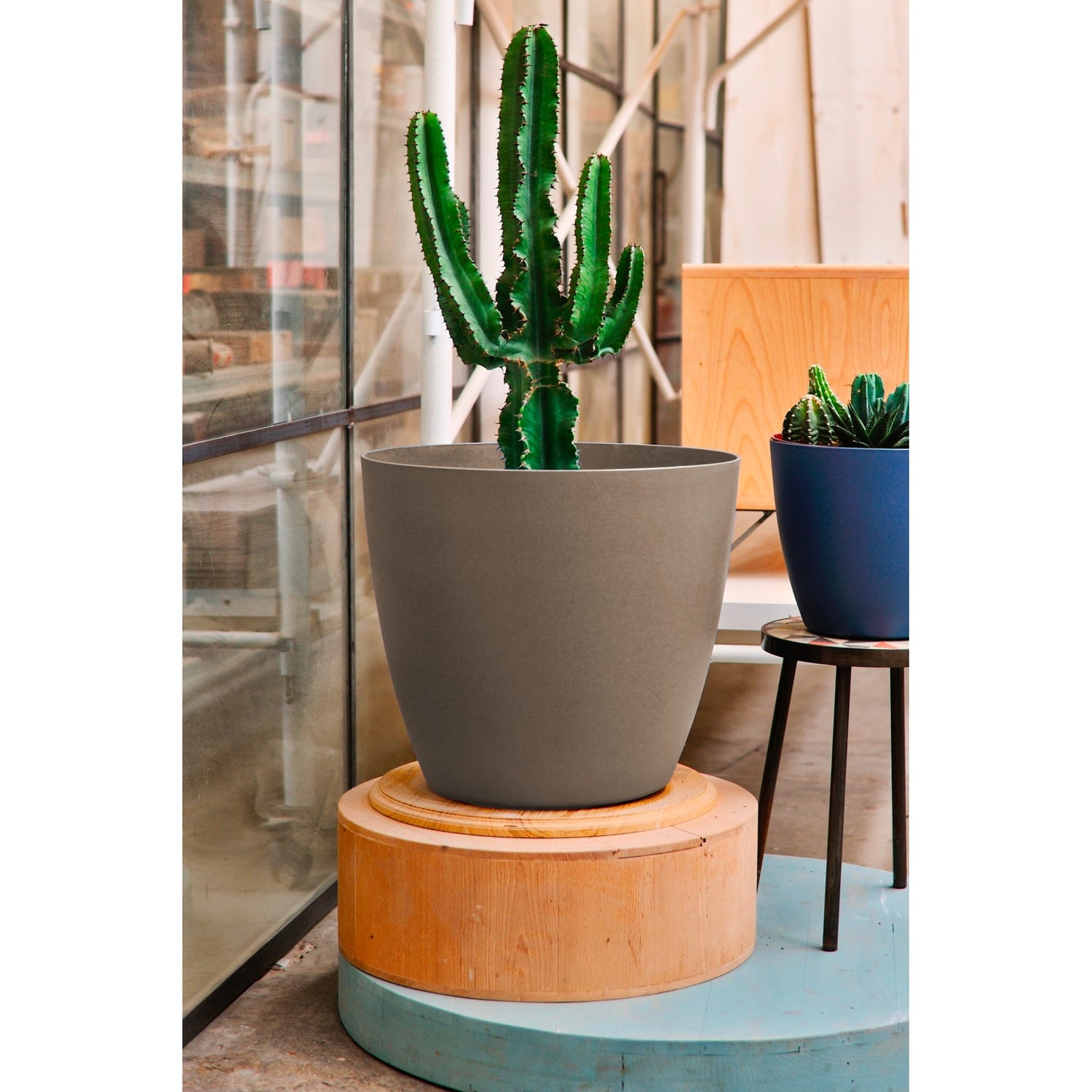 Kit TeraPlast Bayon 50 Vase en résine Lait – Vase rond avec réserve d'eau pour une utilisation intérieure et extérieure