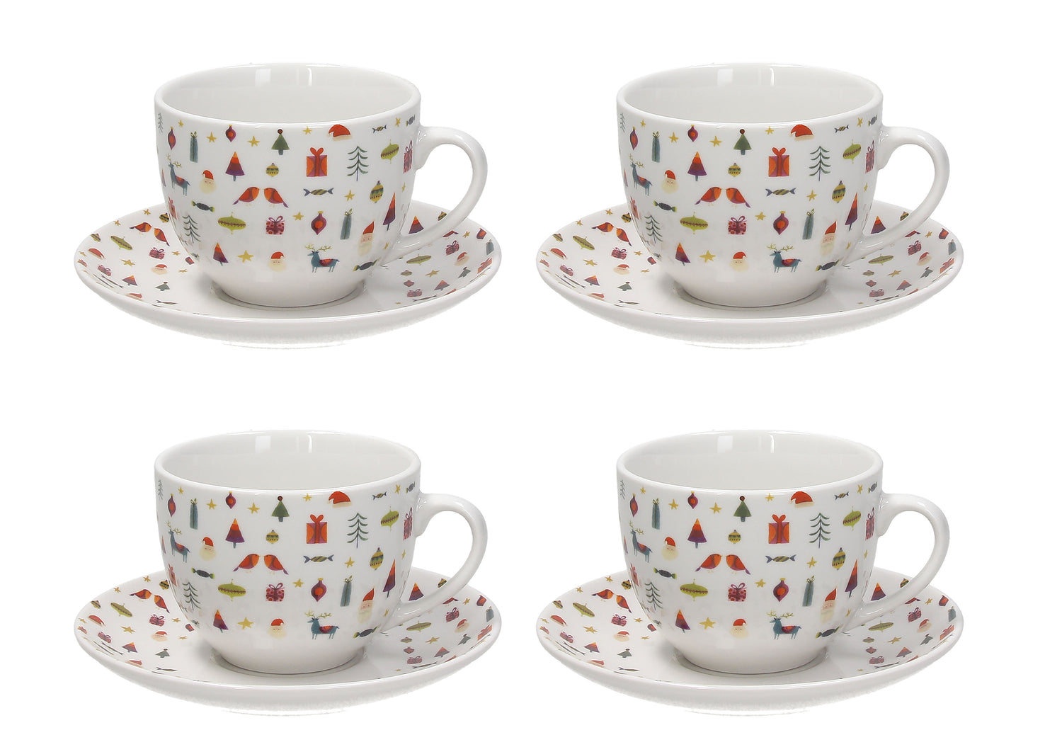 Service de Noël Tognana 4 tasses à cappuccino avec soucoupe Atollo Candy Blanc Rouge