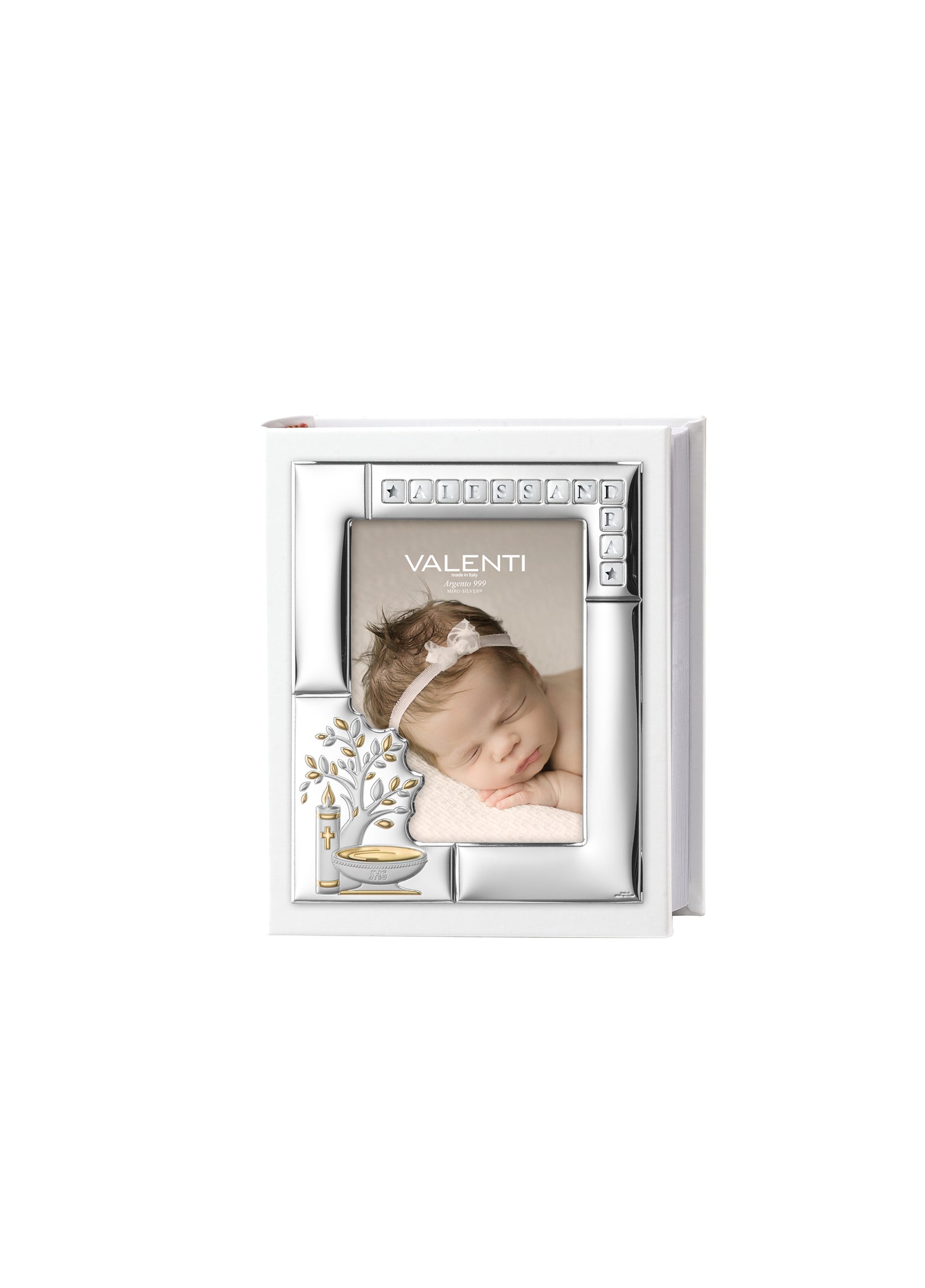 Album photo baptême Valenti 25 x 30 cm cuir argenté lettres blanches