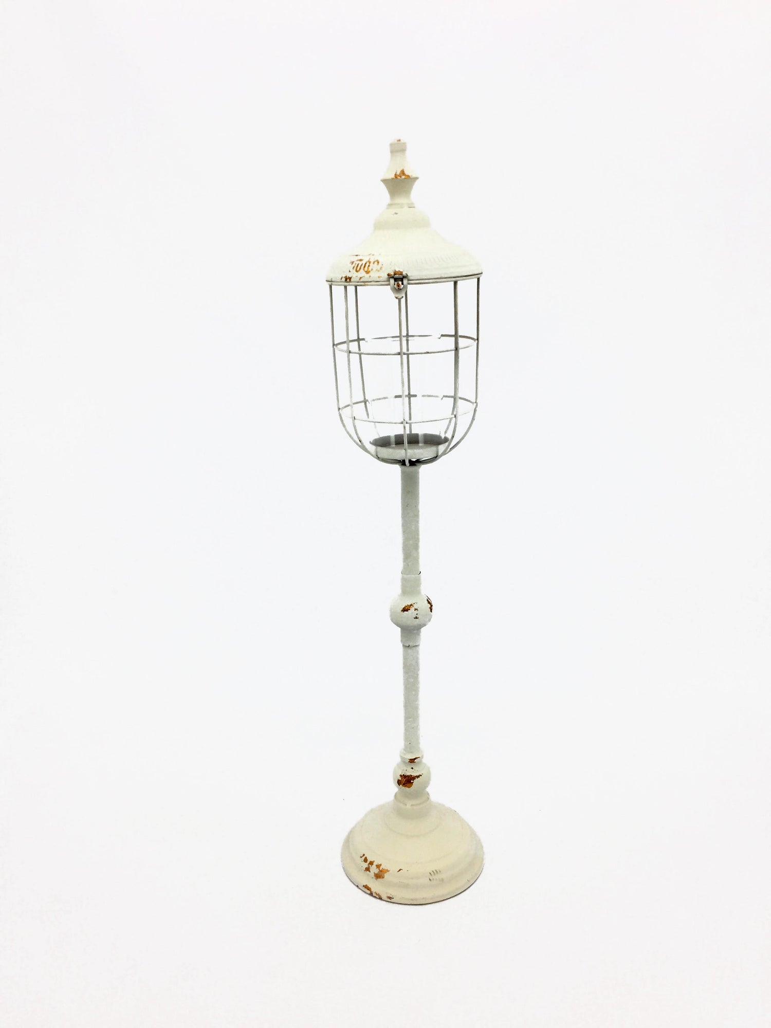 Lanterne en osier simple, bougeoir, diamètre 17,5 cm, hauteur 81 cm, blanc